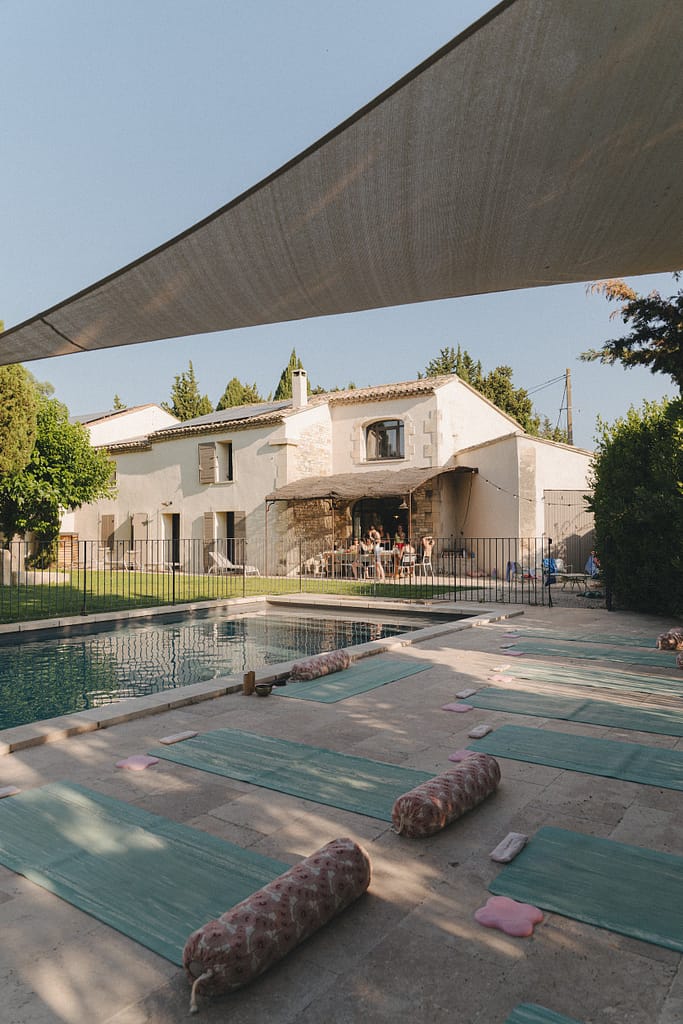 Avec ses espaces extérieurs baignés de lumière, ses coins de repos à l’ombre des arbres, le Mas accueille notre retraite de Yoga & Ayurveda dans une atmosphère simple, authentique et profondément ressourçante.